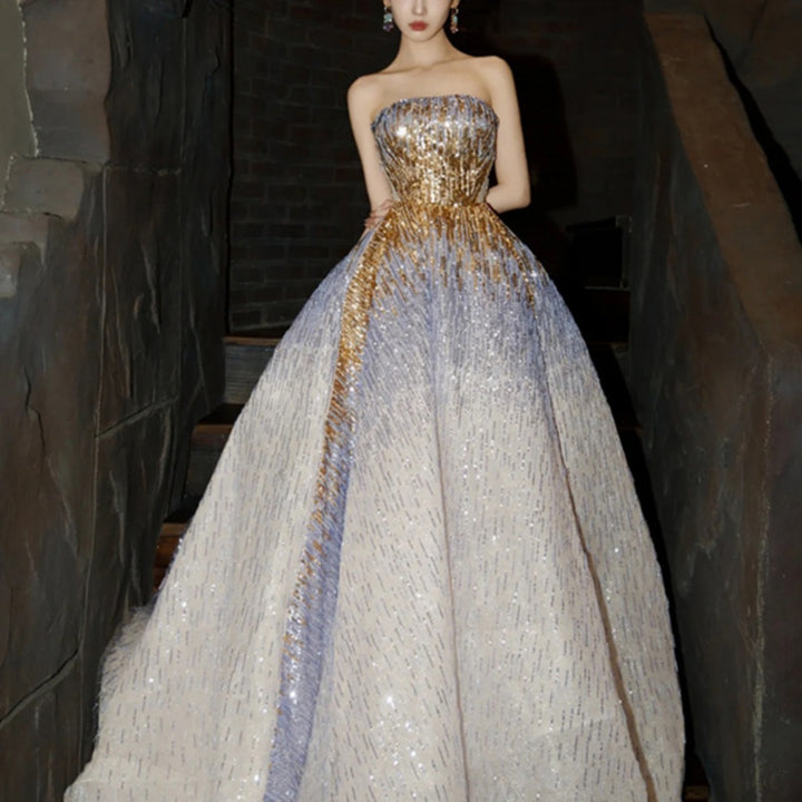 Purple Tube Top Light Miniature High-end Banquet Embossed Toast Dress